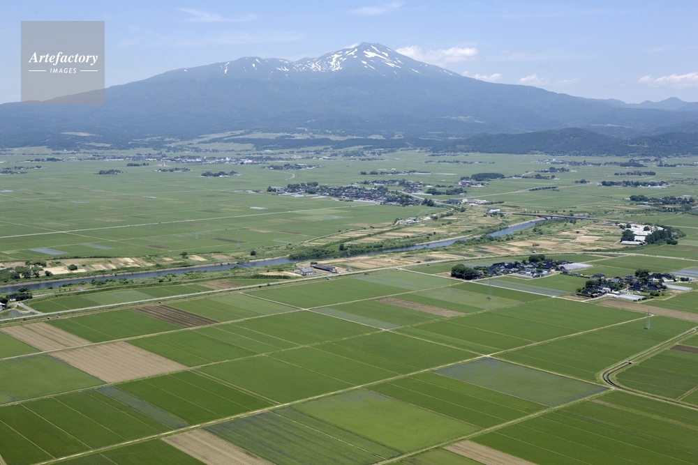 | 作品タイトル | 西荒瀬地区門田の圃場と日向川、庄内平野、鳥海山 | モデルリリース | なし | |