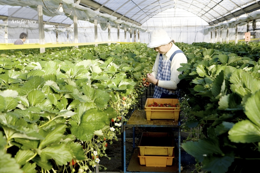 | 作品タイトル | イチゴハウス・水耕栽培方式の収穫 | モデルリリース | なし | |
