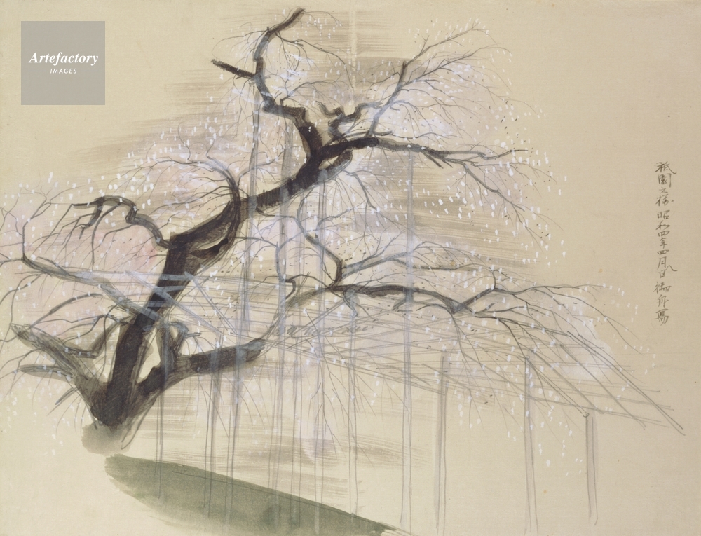 | キャプション | ぎおんのさくら(しゃせい),1929(昭和4),紙本・彩色・額(1面) | 制限事項 | ||