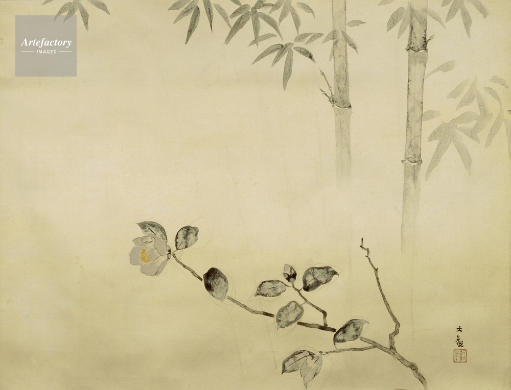 | キャプション | かんつばき,1949(昭和24),紙本金地・彩色・軸(1幅) | 制限事項 | ||