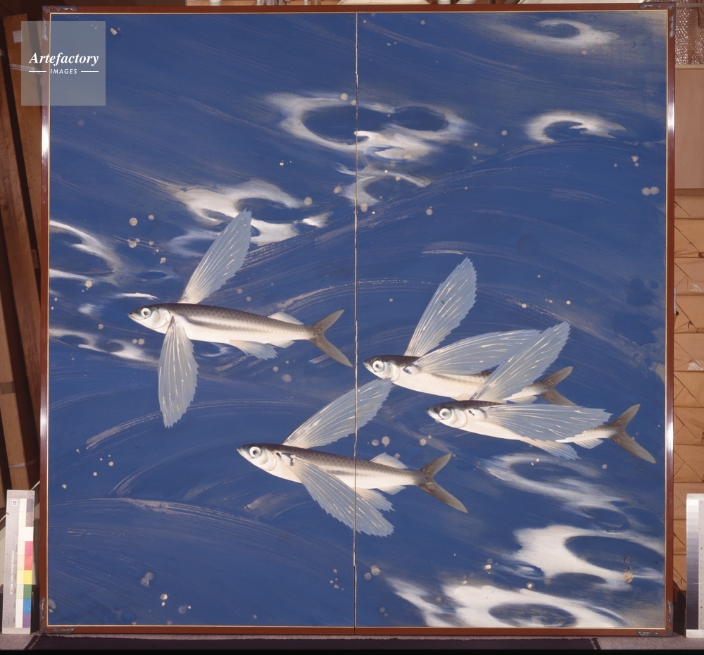 | キャプション | くろしお,1932(昭和7),絹本・彩色・屏風(2曲1双) | 制限事項 | ||