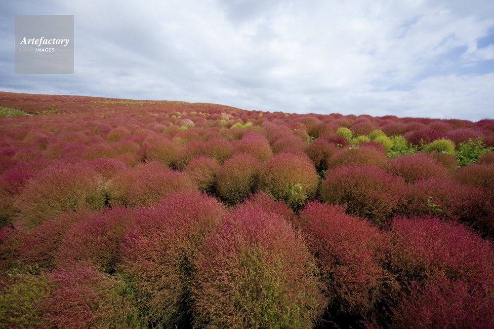 | 作品タイトル | ひたち海浜公園 コキアの紅葉 あかざ科ホウキギ属 | モデルリリース | なし | |
