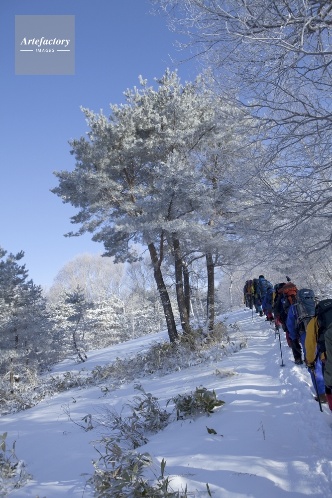 | 作品タイトル | 四阿山冬山登山中に見た霧氷のある風景と登山パーティ | モデルリリース | なし | |