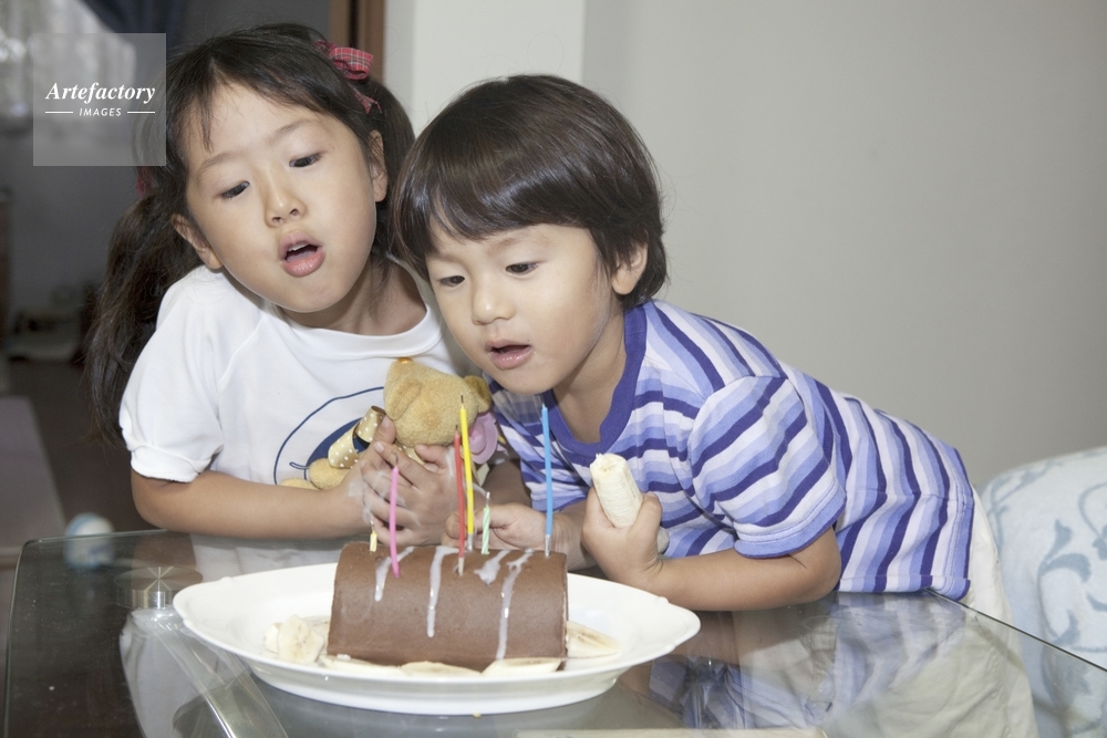| 作品タイトル | 火を吹き消す6歳女児と3歳男児 | モデルリリース | あり | |