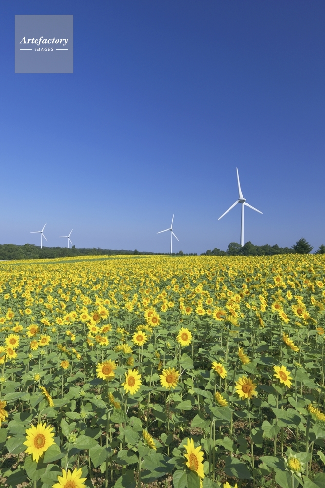| 作品タイトル | ヒマワリの花畑と風力発電 | モデルリリース | なし | |