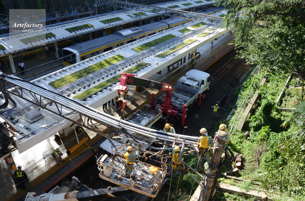日本,台風被害,台風24号,復旧作業,倒木,電線工事,鉄道,中央線快速,四ッ谷駅,電車,駅,JR東日本,2018年10月1日,秋,屋外,東京,四ッ谷,新宿区