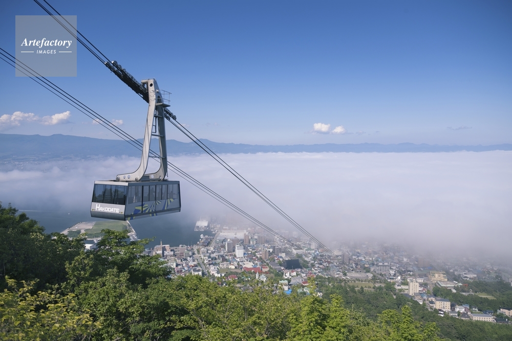 | 作品タイトル | 函館山ロープウェイと霧かかる函館市街 | モデルリリース | なし | |