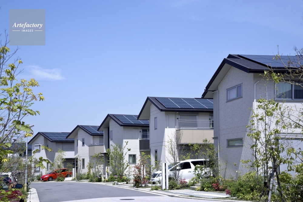 | 作品タイトル | ソーラーパネルを設置した住宅街 | モデルリリース | なし | |