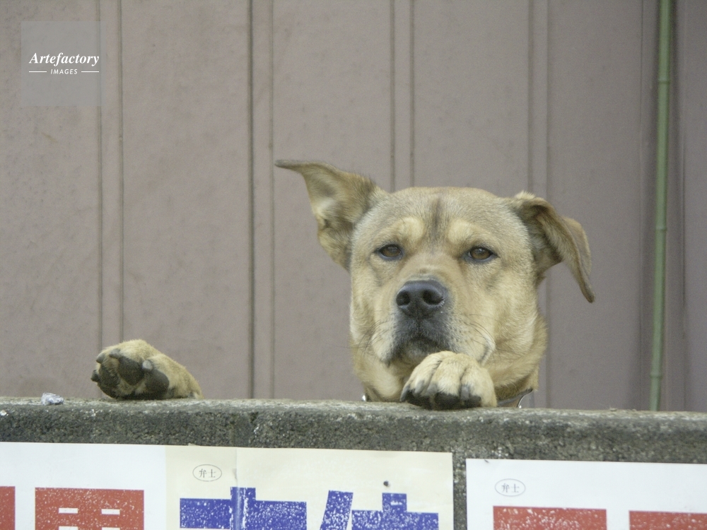 | 作品タイトル | ブロック塀から顔を出す犬 | モデルリリース | なし | |