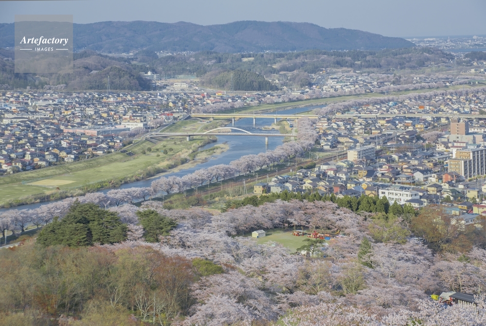 | 作品タイトル | 船岡城址公園から望むサクラと白石川 | モデルリリース | なし | |
