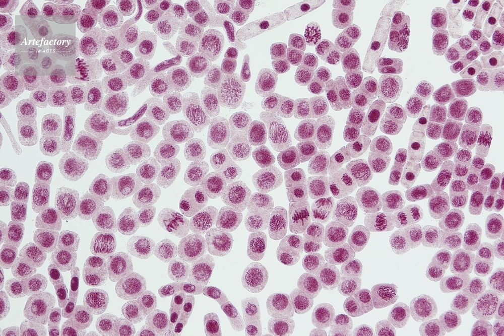 | キャプション | 体細胞分裂のいろいろな時期 酢酸オルセイン染色、長辺35mmの場合 50倍 | 制限事項 | ||