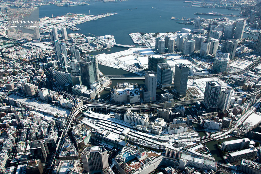 | 作品タイトル | 雪景色の横浜駅とみなとみらい地区,横浜港 | モデルリリース | なし | |