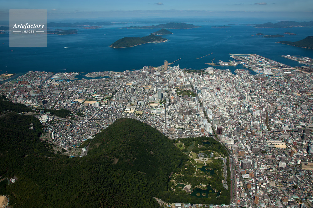 | 作品タイトル | 高松市街地と栗林公園より高松港と瀬戸内海 | モデルリリース | なし | |