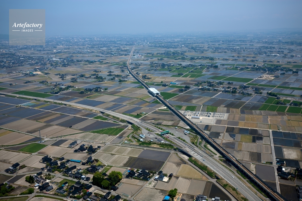 | 作品タイトル | 砺波平野の北陸新幹線と高岡砺波道路(福岡町より高岡方面) | モデルリリース | なし | |