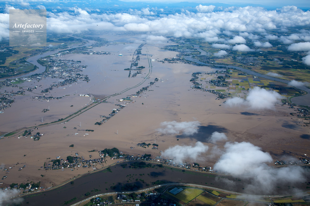 | 作品タイトル | 東日本豪雨の大雨により鬼怒川決壊した常総市水海道市街地周辺 | モデルリリース | なし | |