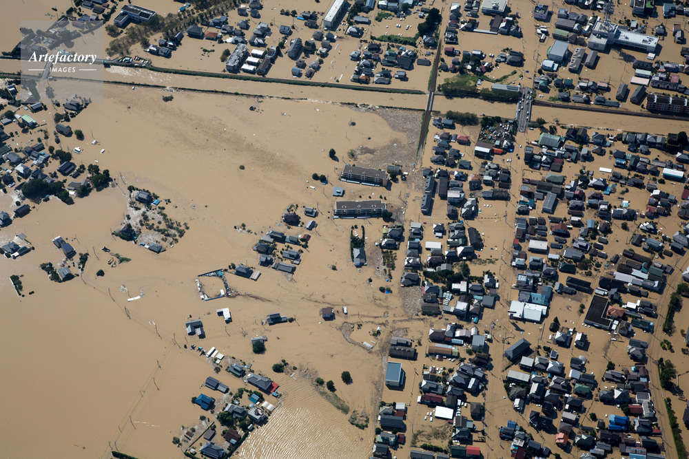 | 作品タイトル | 東日本豪雨の大雨により鬼怒川決壊した常総市水海道市街地周辺 | モデルリリース | なし | |