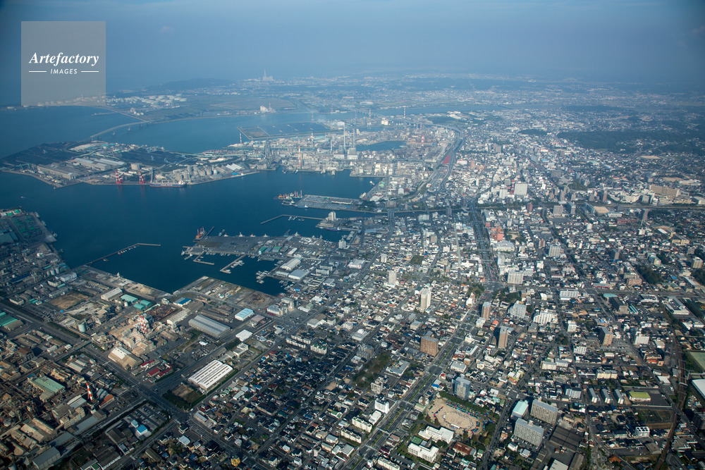 | 作品タイトル | 宇部市街地と宇部駅より工業地帯(北九州工業地帯),宇部港 | モデルリリース | なし | |