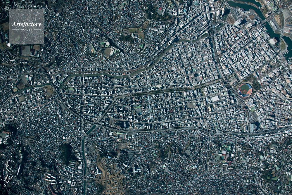 | 作品タイトル | 吉田新田跡地(釣り鐘型地形)坂東町,黄金町周辺(俯瞰撮影)3,000m | モデルリリース | なし | |
