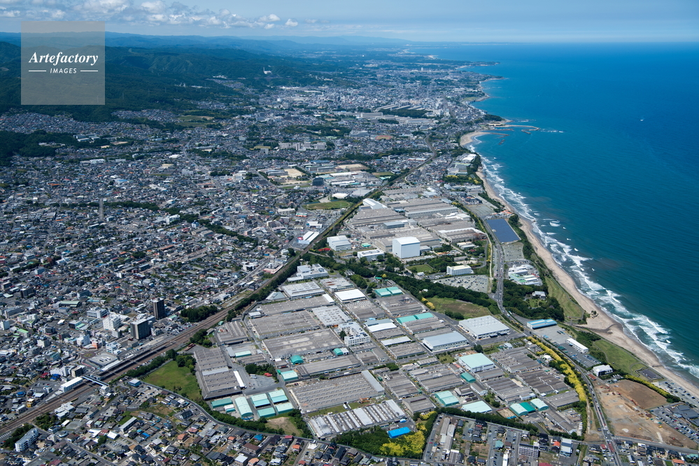 | 作品タイトル | 日立の海岸線と日立市街地と工場群(日立多賀駅より日立駅方面) | モデルリリース | なし | |