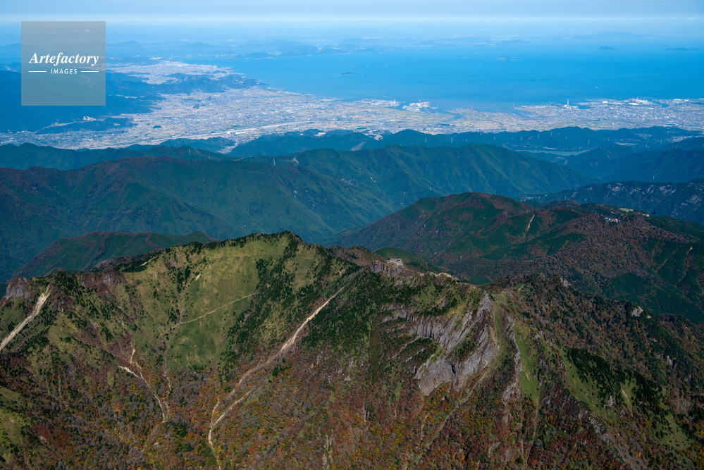 | 作品タイトル | 石鎚山(日本百名山,日本百景,日本七霊山,石鎚山脈,石鎚国定公園)山頂付近より西条市方面 | モデルリリース | なし | |