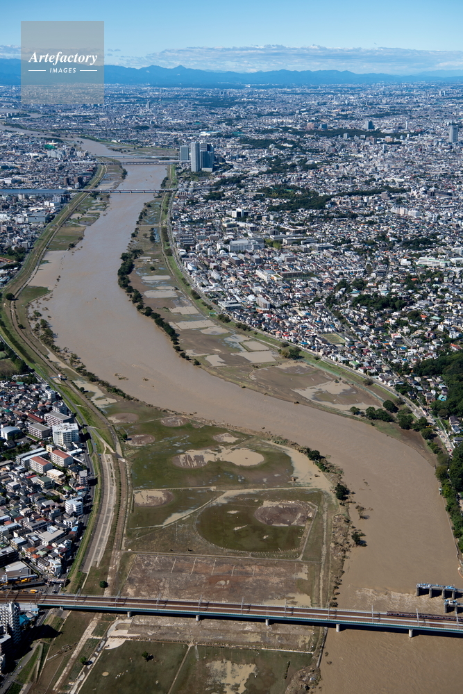 | 作品タイトル | 台風19号で氾濫した多摩川(田園調布付近より上流) | モデルリリース | なし | |