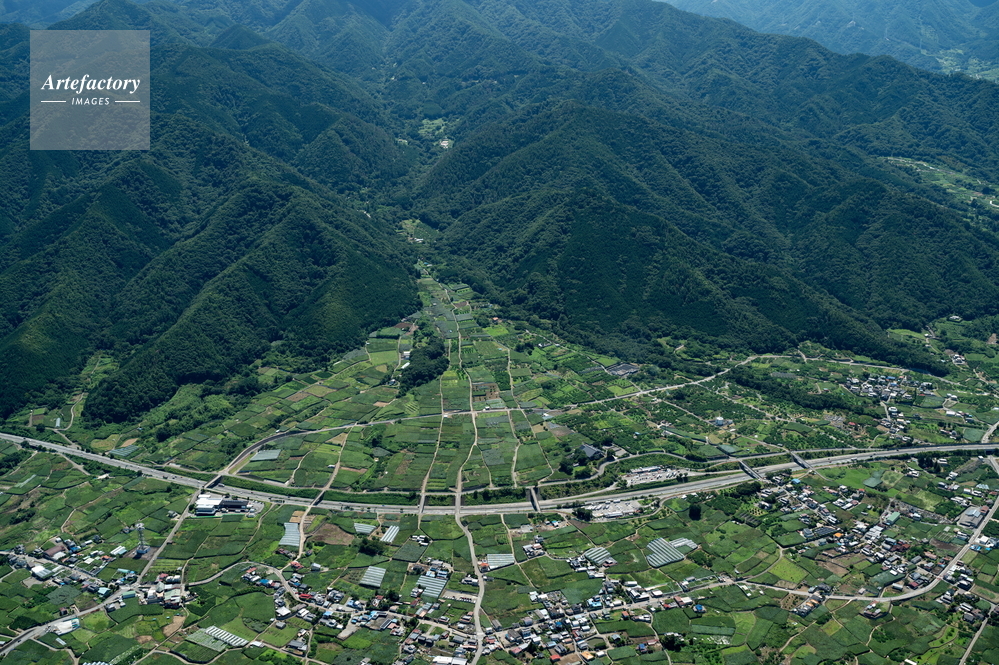 | 作品タイトル | 勝沼,一宮の扇状地と中央高速道路(釈迦堂パーキング付近) | モデルリリース | なし | |