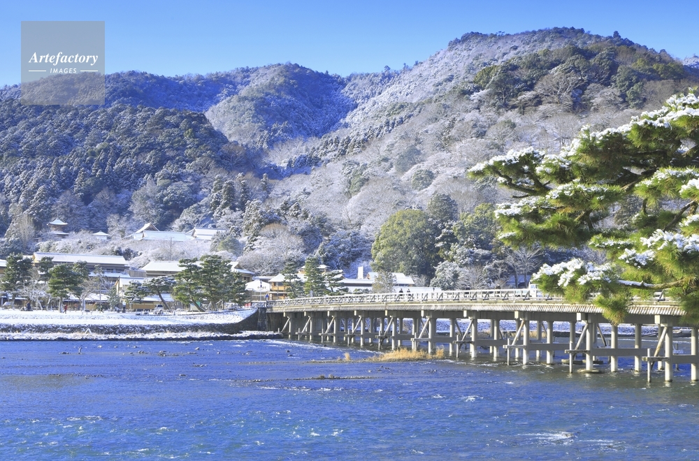 | キャプション | 冬 雪 嵐山 朝 渡月橋 法輪寺 橋 マツ 橋 青空 桂川 川 | 制限事項 | ||