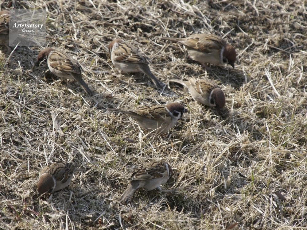 | 作品タイトル | 群れで餌を食べるスズメ | モデルリリース | なし | |
