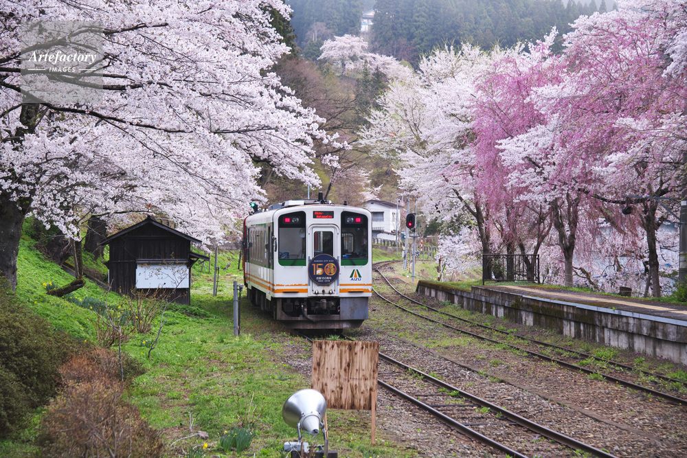 作品タイトル | 湯野上温泉駅と桜と列車 | モデルリリース | なし | |