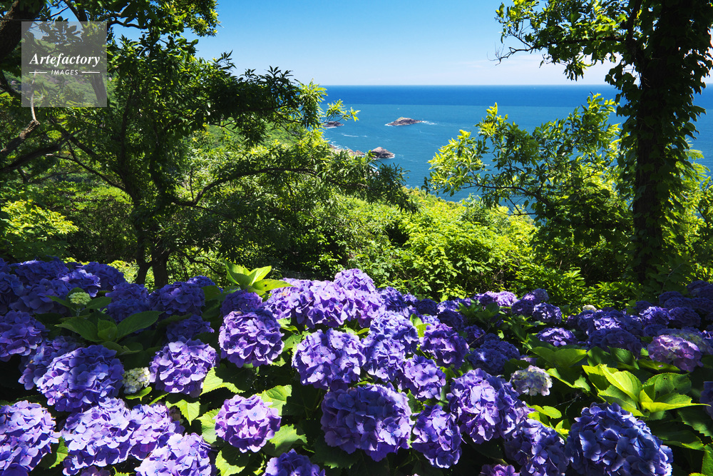 | 作品タイトル | 桃源郷岬のアジサイと日向灘 | モデルリリース | なし | |