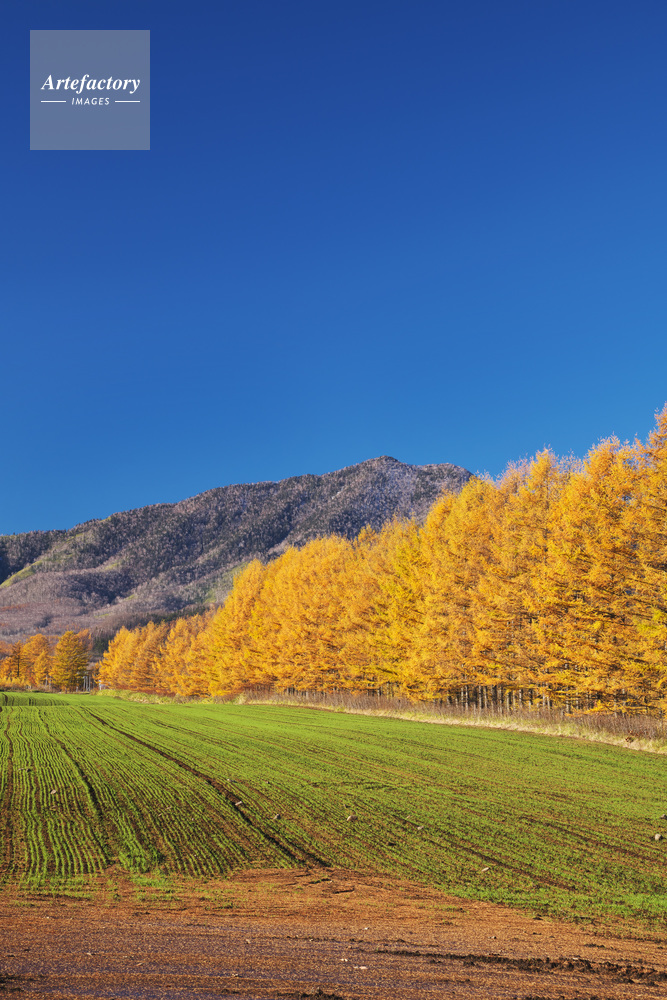 | 作品タイトル | カラマツ林の秋と日高山脈 | モデルリリース | なし | |