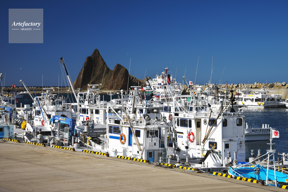 | 作品タイトル | ウトロ港と三角岩と漁船 | モデルリリース | なし | |