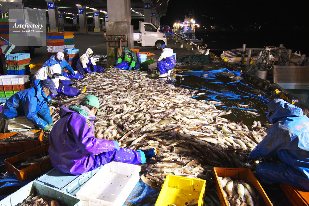 | 作品タイトル | 羅臼港のイカ荷揚げとイカ選別 | モデルリリース | なし | |
