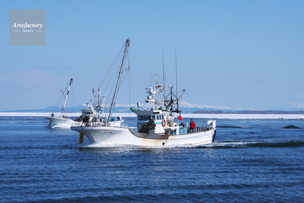 | 作品タイトル | 尾岱沼漁港に帰港するホタテ漁船 | モデルリリース | なし | |