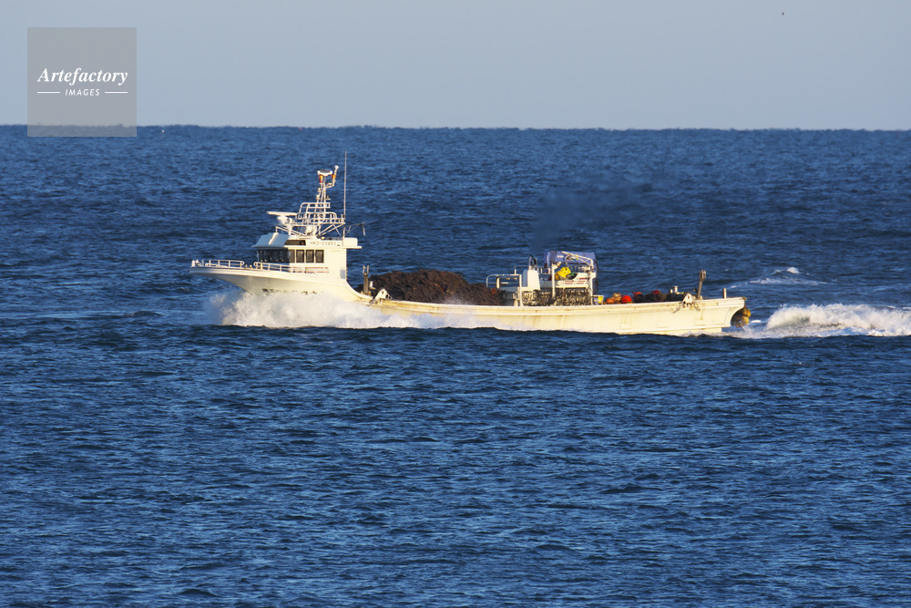 | 作品タイトル | ホタテ養殖カゴを港に運ぶ漁船 | モデルリリース | なし | |