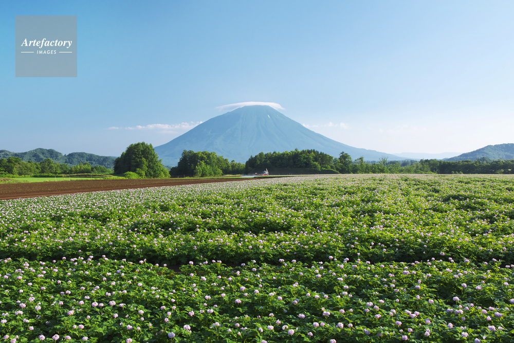 | 作品タイトル | 羊蹄山とジャガイモの花とトラクター | モデルリリース | なし | |