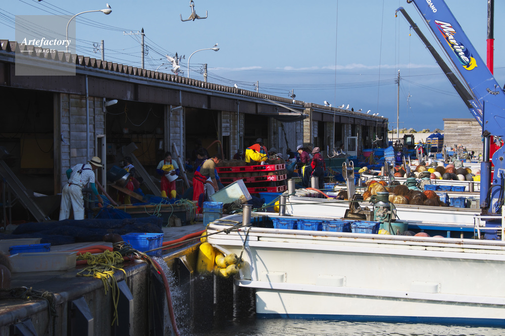 | 作品タイトル | 臼谷漁港の養殖ホタテの作業風景 | モデルリリース | なし | |