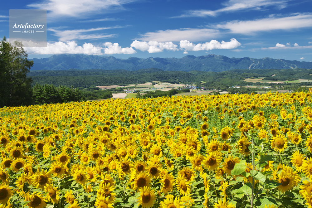 | 作品タイトル | 麓郷展望台のヒマワリと夕張山地 | モデルリリース | なし | |