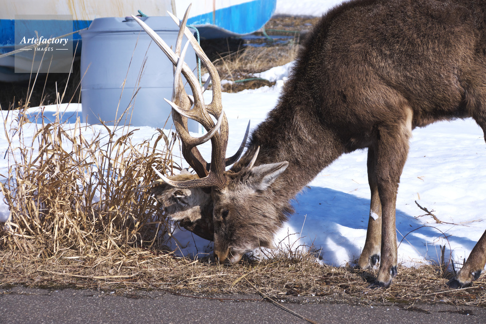 | 作品タイトル | エゾシカとツノに絡みついた死骸の頭 | モデルリリース | なし | |