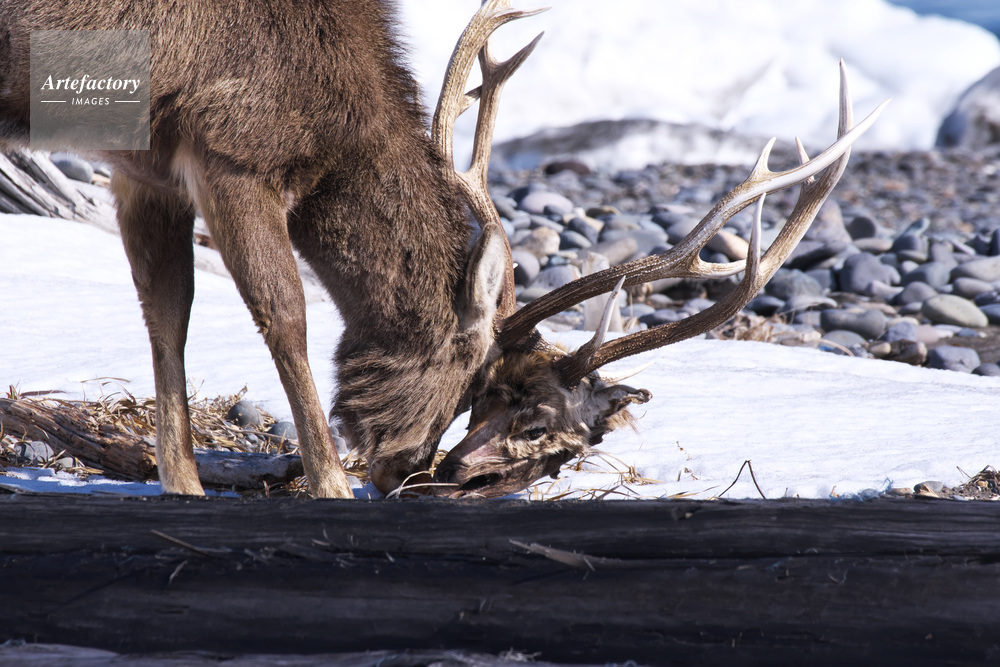 | 作品タイトル | エゾシカのツノにからみついた死骸の頭 | モデルリリース | なし | |
