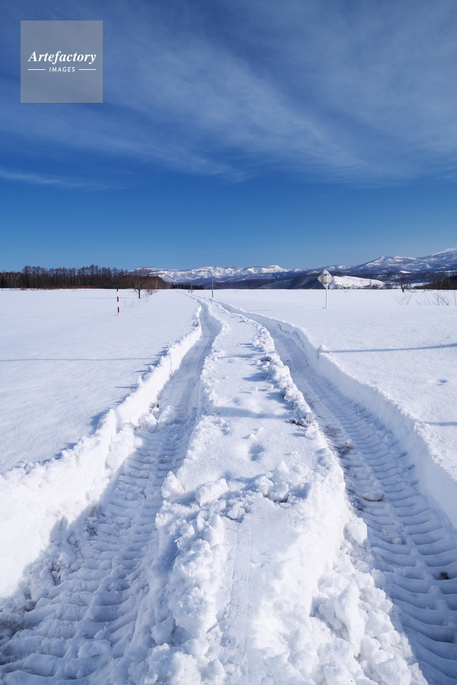 | 作品タイトル | 雪の道の重機のタイヤ跡 | モデルリリース | なし | |