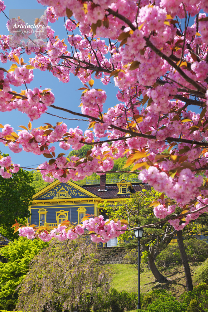 作品タイトル | 元町公園の桜と旧函館区公会堂と函館山 | モデルリリース | なし | |