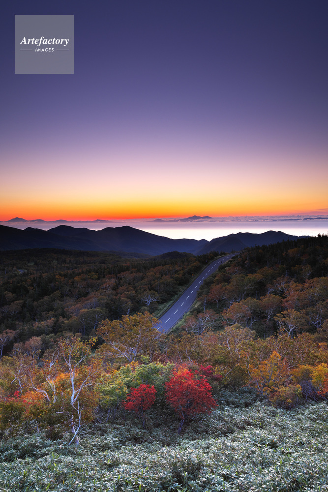 | 作品タイトル | 知床峠付近より望む国後島の朝と知床横断道路と紅葉 | モデルリリース | なし | |