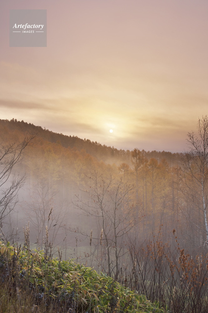 | 作品タイトル | カラマツ林の日の出 | モデルリリース | なし | |