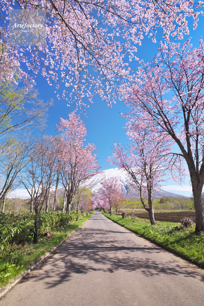 | 作品タイトル | 真狩神社の桜並木と羊蹄山 | モデルリリース | なし | |