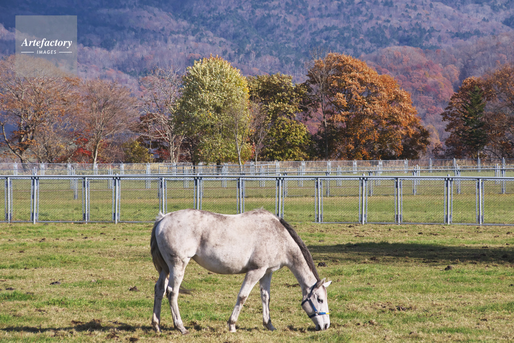 | 作品タイトル | ウマの放牧と優駿さくらロードの紅葉 | モデルリリース | なし | |