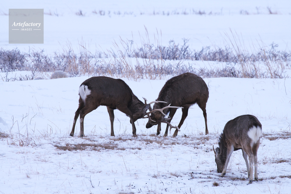| 作品タイトル | 野付半島のエゾシカの角突き | モデルリリース | なし | |