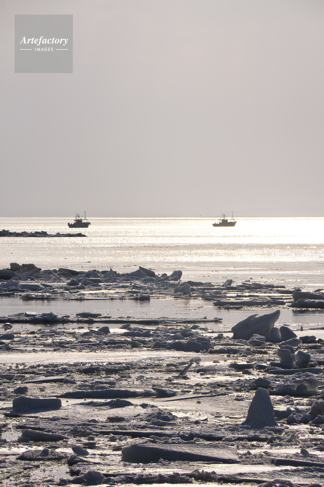 | 作品タイトル | 朝の流氷とスケソウ漁船 | モデルリリース | なし | |