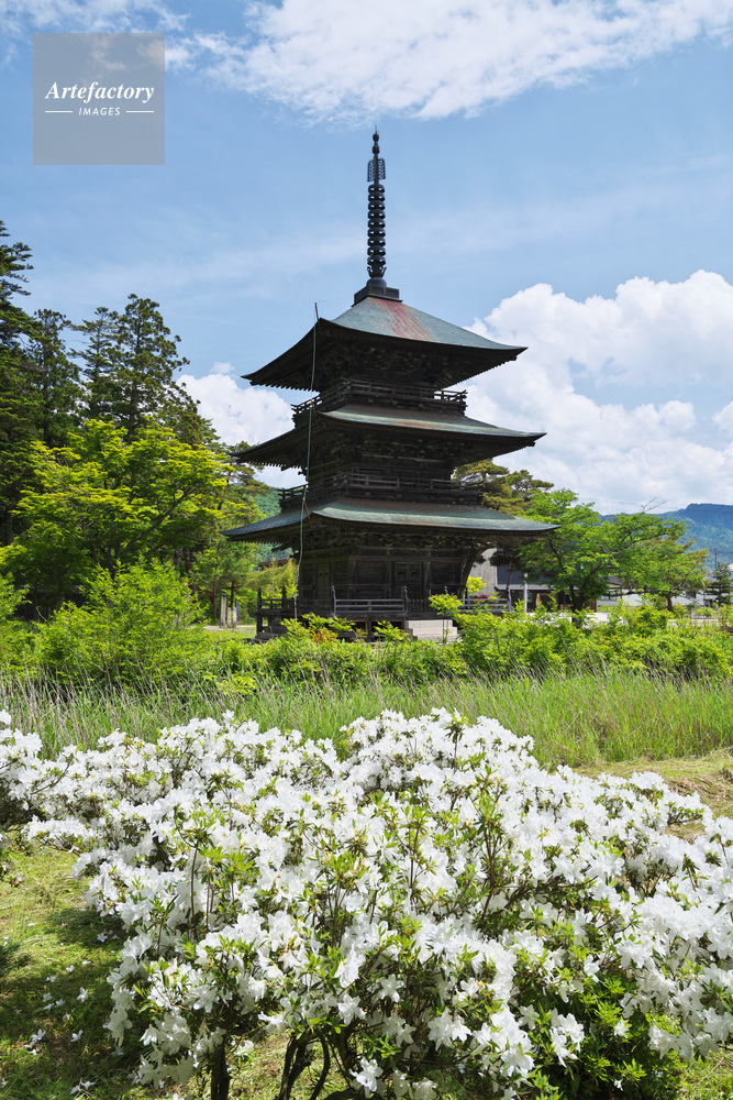 | 作品タイトル | 安久津八幡神社の三重塔と白ツツジ | モデルリリース | なし | |