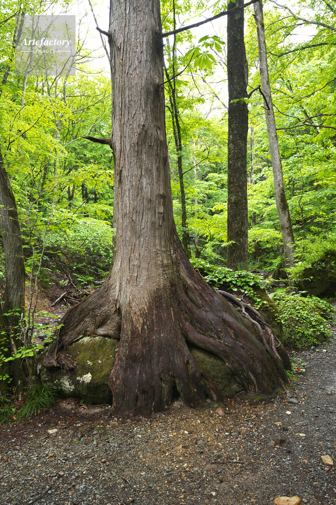 | 作品タイトル | 達沢原生林 石を抱いたサワラの大木 | モデルリリース | なし | |